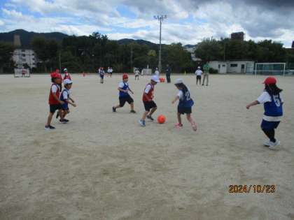 最後は、チームに分かれてサッカーの試合をしました。みんなで楽しく体を動かすことができました。