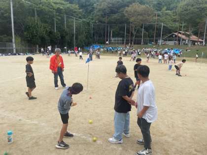 午後の活動は「大繩とび大会」と「グランドゴルフ」でした。