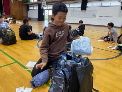 大きなカバンに入れた荷物の確認を行いました。
