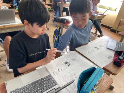 ただ、資料によってどのような分かりやすさがあるのか、どのような効果があるのかを考えるために、文と資料を結び付けて読むことにしました。友達と話し合いながら…自分でじっくりと考えながら…集中して学習に取り組んでいました。