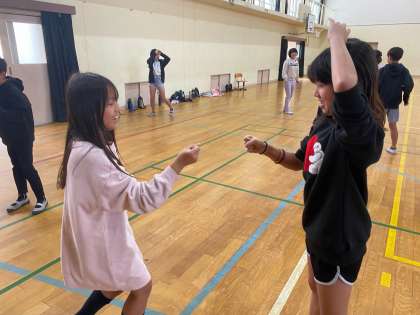 まずは、来週、山の家で行うキャンプファイヤーでのレクリエーションの練習!