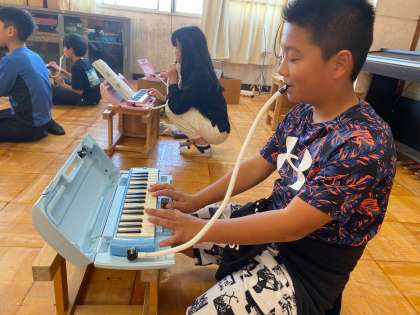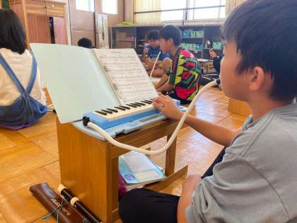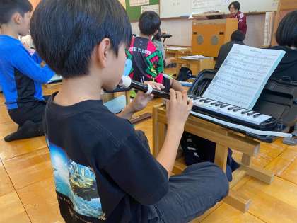 「キリマンジャロ」の曲をリコーダーと鍵盤ハーモニカで演奏しました。呼びかけと答えもしっかりと、、、