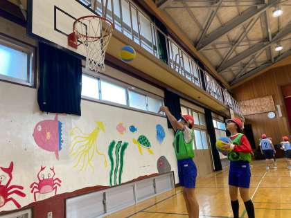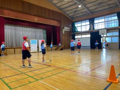 バスケットボールの学習がスタートしました。この日は、学習の進め方や準備の仕方についても知りました。また、ミニゲームを行うことで、パスを出す人と受ける人の間にディフェンスがいる時には、パスは通らないことを全員で確かめました。