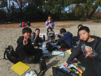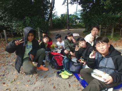 昼食は京都御苑で食べました。お忙しい中、ご準備していただき、ありがとうございました。子どもたち、とっても嬉しそうに食べていました!