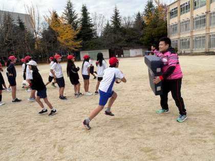 次は、タックル!思いっきり!とても力強いタックルをしていました。