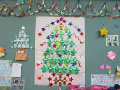 放課後まなび教室では、クリスマスのかざりを作らせてもらい、子どもたちは大喜びです。お部屋もクリスマスモード。