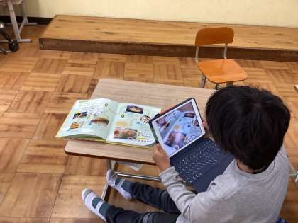 タブレット端末を使って、「すがたを変える〇〇」の文書を作成しました。友達と確認し合ったり、出来上がったものを読み上げてもらったりして確認!