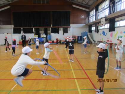 用具あそびでは、グループで遊びを工夫して考えて取り組んでいます。