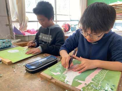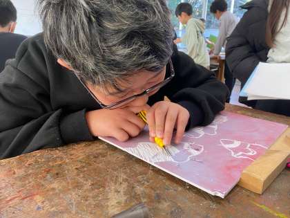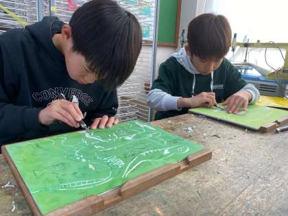 5年 図画工作科「彫りすすめて刷り重ねて」