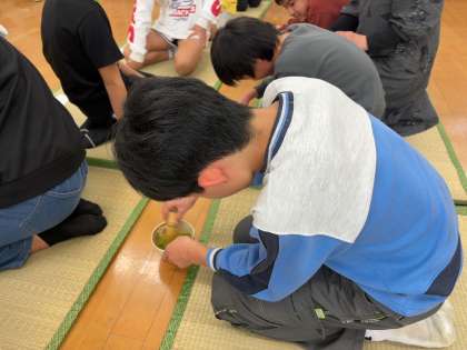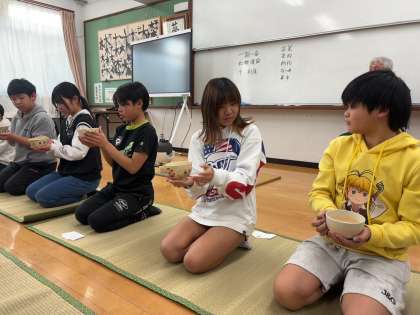 たてたお茶は、友達同士で飲み合いました。苦みを感じた子もいたようですが、しっかり全ていただいていました。