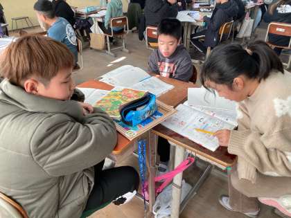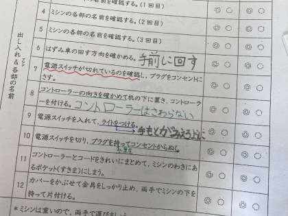 ミシンの使い方を確かめました。正しく安全にミシンを使って、自分だけのランチョンマットを作ることを楽しみにしていた子どもたちでした。