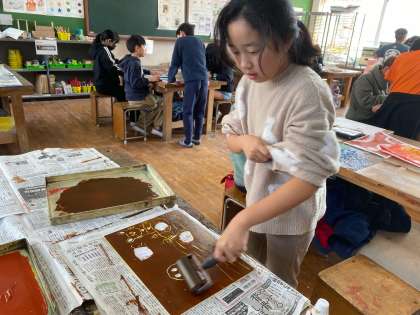 5年 図画工作科「彫りすすめて刷り重ねて」
