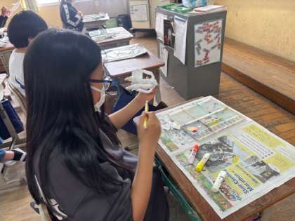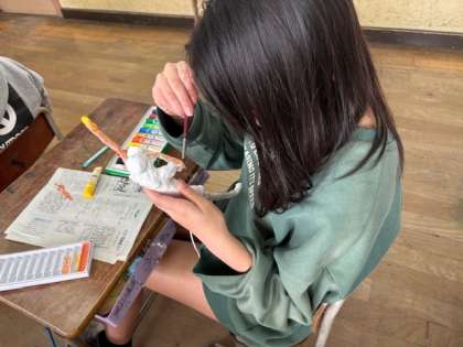 図画工作科では、「未来のわたし」の作品を進めています。色を塗る作業に入りました。未来の自分を想像しながら、真剣に作品を作っています。