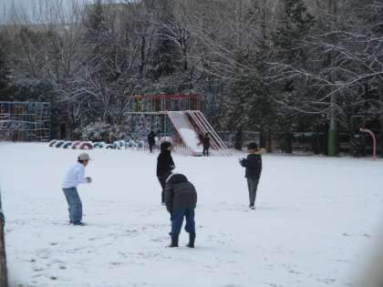 いつも通りお部屋で学習をしたあとは、外に出て「雪遊び」