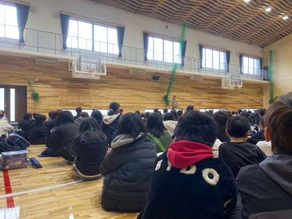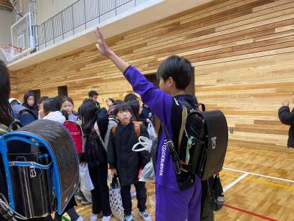 大アリーナに集まり、少し話をしましたが、聞く姿勢も素晴らしかったです。また、登校班を支える立場として頑張る姿もかっこよかったです!