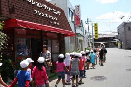6月6日(水),2年生が2回目の町探検に出かけました。出発する前に探検の注意を担任の先生ともう一度確認してから出発しました。今回はイトーヨーカ堂や小さなパン屋など,主にお店を見て回りました。