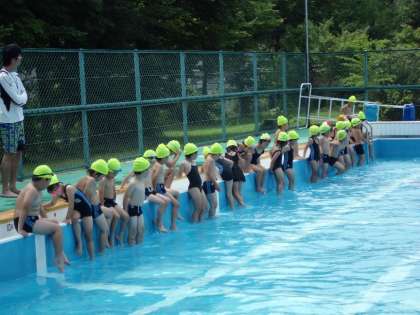1・2年生は低水位での水慣れから始めて、ワニ歩き・カニ歩き・ロケットなどを楽しんでいます。