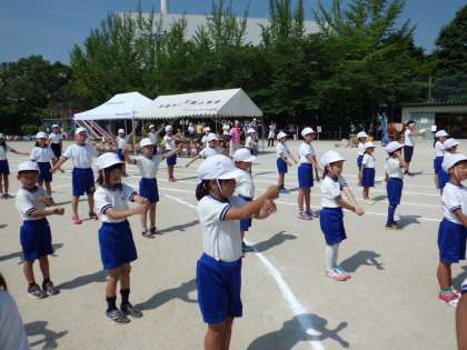 5月30日土曜日に,運動会を実施しました。好天に恵まれ,予定通りのプログラムが実施できました。今年は,PTAから寄贈のテントを応援席に張って,熱中症の予防にも努めました。また,今年は,紅白を縦割りグループで分けました。応援席も縦割りグループごとに座りました。堂々とした入場行進で始まり,5・6年生の集団行動と組体操で,幕を閉じました。全員が,心を一つにして取り組んだ運動会でした。