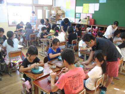 3・4校時は6年生が陶芸体験をしました。