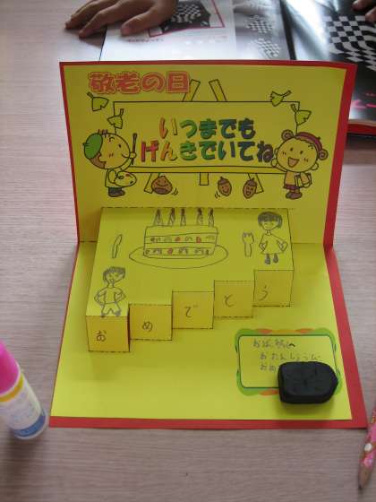 前半は学習,後半は体験活動として,敬老の日にちなんで「ありがとうカード」を作りました。