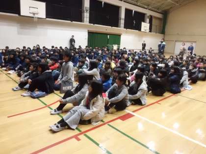本日,小栗栖中学校の1年生,小栗栖小学校,小栗栖宮山小学校,石田小学校の6年生が集まって「小中合同百人一首大会」がありました。34のグループに分かれてそれぞれ札をとり,平均の数で競い合いました。結果は・・・