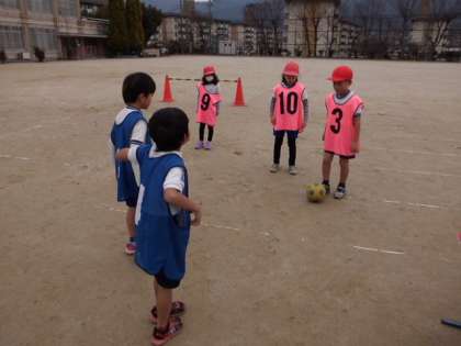 体育でボール蹴りゲームがはじまりました。
