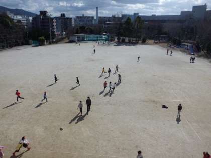 子どもたちは運動場で元気に走り回り,「汗をかいた。」と