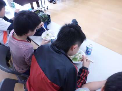 後半はふれあいサロンでにゅうめんとおにぎりをいただきました。みんなでわいわい言いながら温かいにゅうめんをいただいて気持ちもほっこりしました。準備していただいた保護者の方々ありがとうございました。