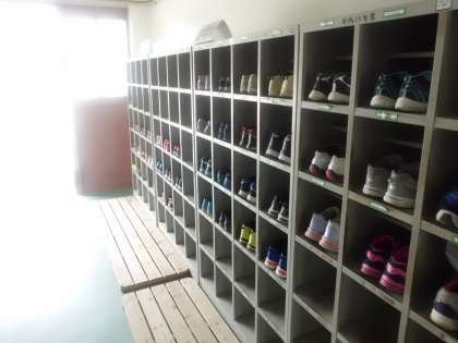 くつ箱のくつのかかとがきれいにそろっていました。使っている本人たちもその前を通る人にもとても気持ちの良い光景でした。この光景が常に見られるといいですね。