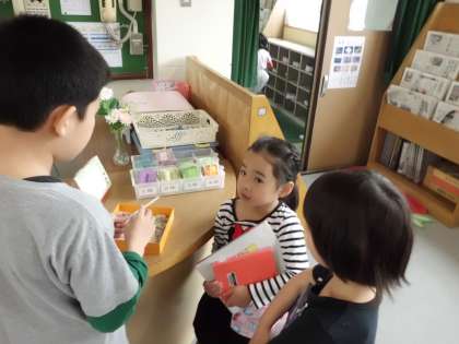 今日から図書委員の活動がはじまりました。図書の貸し出しや返却処理をしたり,小さい子が困っていたら,声をかけてくれていました。他にも1年を通していろいろな活動を企画しています。みんなで図書館をもりあげていきましょう!