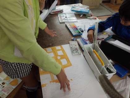 丁寧に塗るだけでなく,塗り方も工夫して表しています。仕上がりが楽しみです。