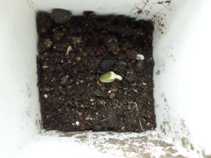 以前にツルレイシの種を植えたことはお伝えしました。毎日水やりをしていると,芽が出てきました。大きく育ってほしいですね。