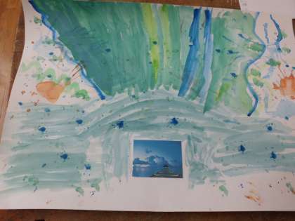 図画工作科「まだ見ぬ世界」の作品が完成しました。森の先に広がる海の世界を描いている児童や,不思議な花が咲いている様子を描いている児童がいました。日曜参観に掲示しますので是非ご参観ください。
