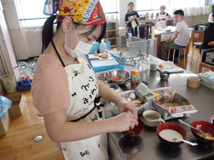 6年生は交流学級のお友だちと一緒に調理実習をしました。