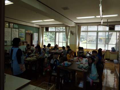いつもくすのき学級で食べている時とは違う、大人数での給食の雰囲気を楽しんでいました。