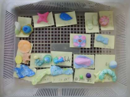 図工で「幻の花」という学習を始めました。今まで見たことないような幻の花を絵に表していく予定です。そこで,幻の花を咲かすためには,幻の種が必要だろうということで,今日は紙粘土を使って幻の種を作りました。様々な色・形・大きさの種が完成しました。どんな花が咲くのか楽しみです。