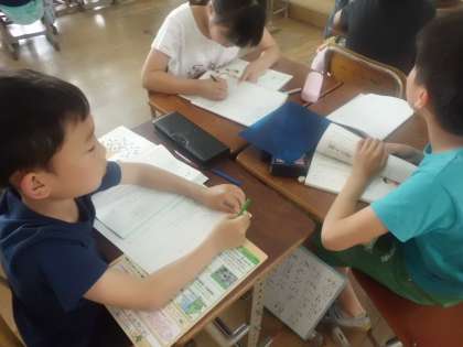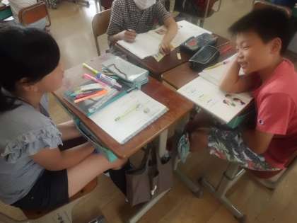 国語科の時間にインタビューについて学習しはじめました。3人グループで「インタビューをする人」,「インタビューされる人」,「記録する人」を順番にまわしていき「何を学習していけばいいのか?」を考えました。相手の答えを予想しながらインタビューをするにはどうしたらよいのかを考えていきます。