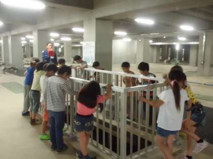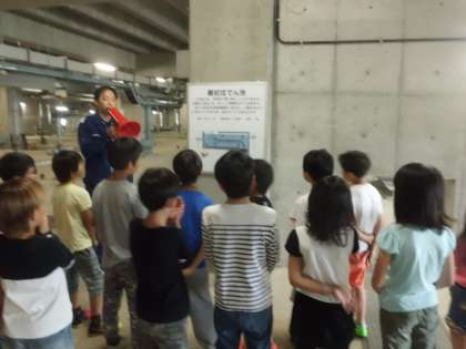 一通り説明を受けた後,実際にきれいにしているところを見せてもらいました。地下から水をすいあげる大きなポンプがあったり,汚れた水が流れてきて微生物が水をきれいにしているところを見せてもらったりしました。