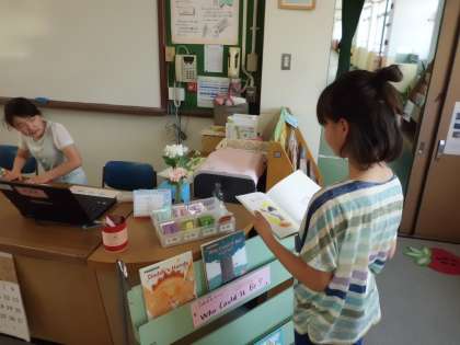 さっそく,図書館に並べたその本とそのシリーズの本を読みに来てくれました。紹介した先生もたいへん喜んでくださっています。