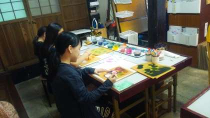 選択体験は友禅、輪島塗、九谷焼、金箔の館に分かれ、ハンカチや箸、湯飲みなどを作りました。満足の出来上がりになったようです。