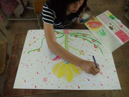 図工で「幻の花」を制作していることは以前にもお伝えしました。最後まで丁寧に仕上げている姿がたくさん見られました。今回で全員幻の花が完成しました。教室に貼って幻の花が満開になるのが楽しみです。