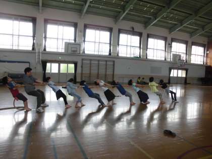 5年生は7月8日(日)のつなひき大会に向けて,毎日練習しています。「1.2」や「よいしょ」のかけ声で気持ちと想いをそろえます。また腰をおとしてしっかりと踏ん張るのもポイントです。がんばれ〜!!