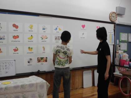 3くみの外国語の学習様子です。「I like ○○○」「I don‘t like○○○」の練習をしました。音楽に合わせて覚えました。