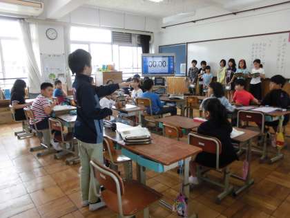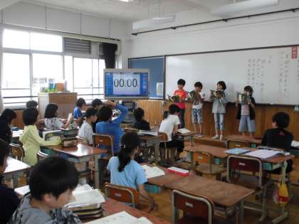 「徒然草,平家物語,竹取物語,奥の細道」この4つの古典の文章の読み方をグループで工夫して考えました。自分のよみたい古典を選び,そのグループで集まりいろいろと話し合いを重ねていました。最後にはグループごとに発表会もありました。