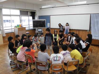 学級活動でフルーツバスケットをクラスのみんなで楽しみました。こまかいルールなど子どもたちで話し合ってゲームを進めていました。