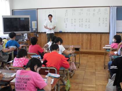 新出漢字の学習中。『豊』の漢字を見て「武 豊!!」と口々に言っていました。