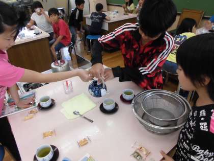 自分たちで入れたお茶は、とてもおいしかったのですが、普段口にしているお茶よりも苦いと感じていた児童もいたようです。