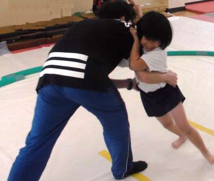 みんな元気よくすもうに取り組んでいます。先生とすもうを取りながら,相手に勝つための姿勢や押し方の工夫を学んでいます。18日にはわんぱくずもうもあるので,学習の成果が出るといいですね。