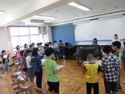 「いつでもあの海は」の学習をしました。今日はアルトパートの練習も行い,これから二部合唱ができます。校舎には5年生の元気で美しい歌声が響きわたっていました。