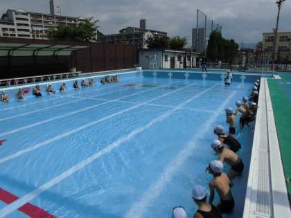 バディーを決めました。「くちびるの色大丈夫?」「しんどくない?」バディー同士で体調を確認し合ったり変化はないかしています。今日は水慣れで,うさぎやワニになりきって動いたり,ドンじゃんけんをしてみんなで楽しみながらの学習でした。